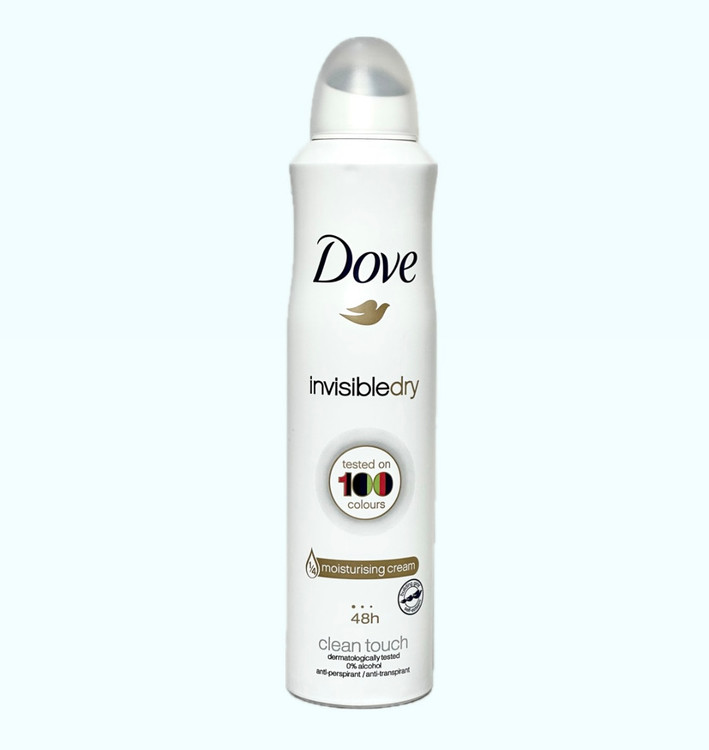 اسپری ضد تعریق زنانه داو Invisible dry فرموله شده با تکنولوژی 100 colors، به این منظور که روی 100 رنگ لباس تست شده است و هیچ اثری از لک و یا سفیدک روی لباس ها بر جای نمی گذارد.
