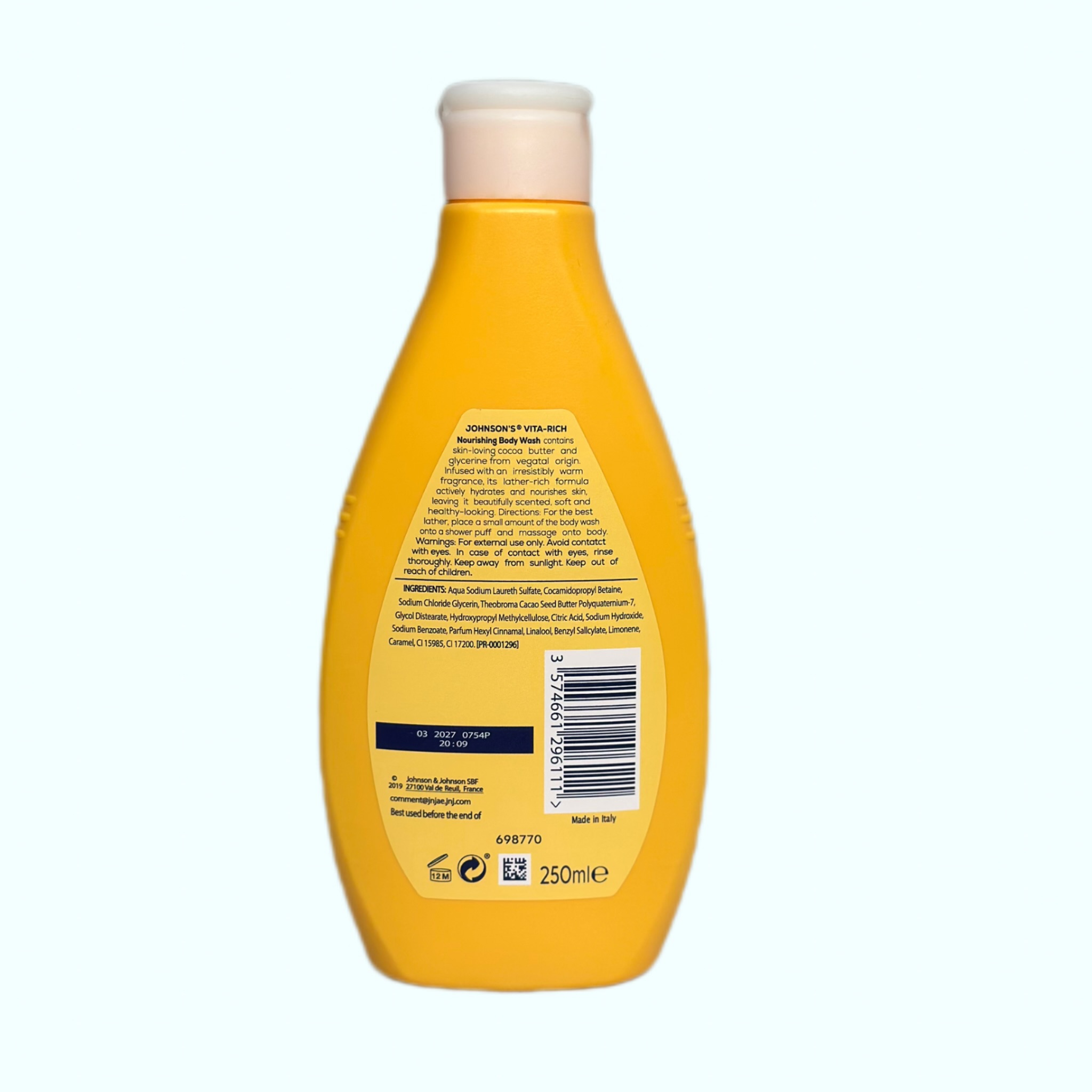 شامپو بدن Johnson’s Vita-Rich با کره شکلات (کره کاکائو) مخصوص افرادی طراحی شده که پوست خشک یا دهیدراته دارند و بعد از حمام بهدنبال نرمی واقعی پوست هستند. کره کاکائو بهعنوان یک ماده مغذی شناختهشده، به حفظ رطوبت پوست کمک کرده و از خشکی و زبری جلوگیری میکند.