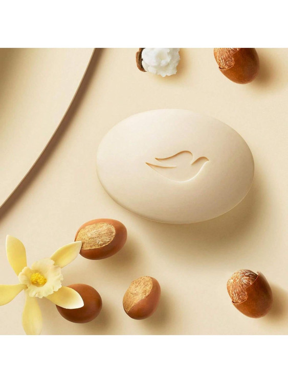 Dove Shea Butter & Vanilla Beauty Bar یک بیوتی بار مغذی و کرمی از سری Purely Pampering داو است که با ترکیب شی باتر و رایحه گرم وانیل، علاوه بر پاکسازی ملایم پوست، به تغذیه و نرمی عمیق آن کمک میکند.