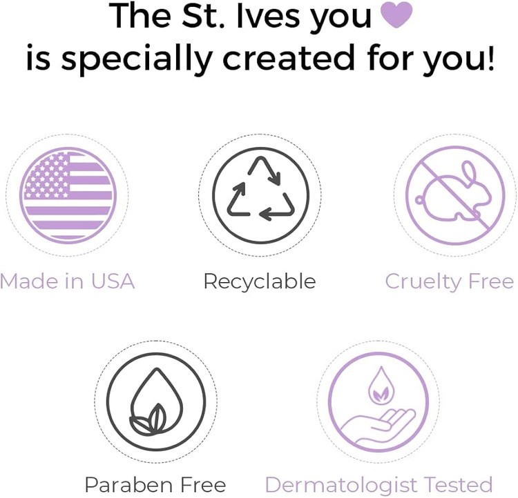 برند St. Ives بر پایه استفاده از عصارههای طبیعی (100% Natural Extracts) شناخته میشود.