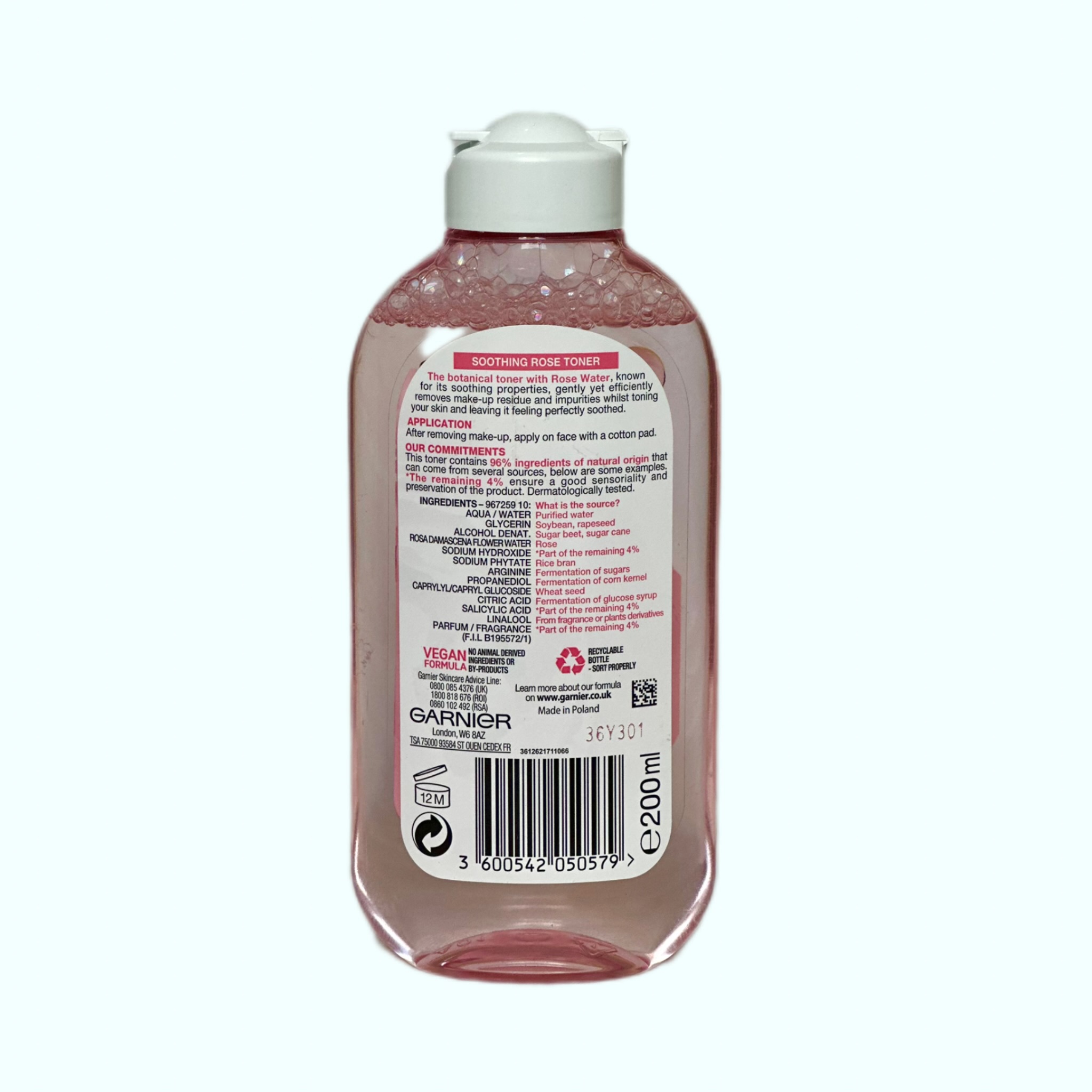 این محلول تونر گارنیر گل رز نیازی به شستشو ندارد.