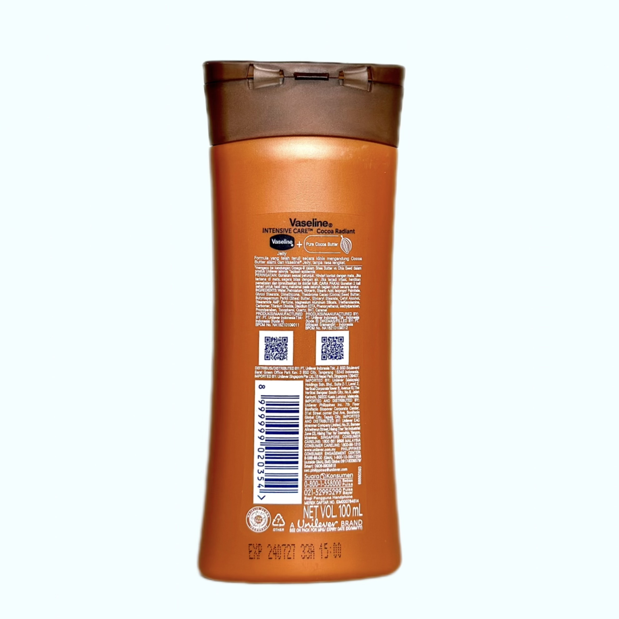 حاوی روغن کاکائو و گیاه شی . احیای پوست آسیب دیده جذب سریع توسط پوست آبرسانی قوی و فاقد چربی تغذیه کننده ماندگاری 48 ساعته حفظ درخشندگی طبیعی پوست دارای مجوز بهداشتی: رایحه گرم و شیرین شکلات . 100 میل